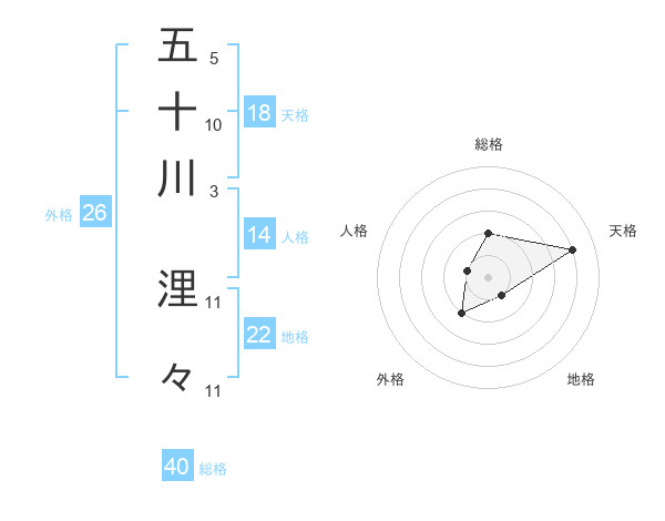 五十川 浬々さんを姓名の画数から五運を鑑定