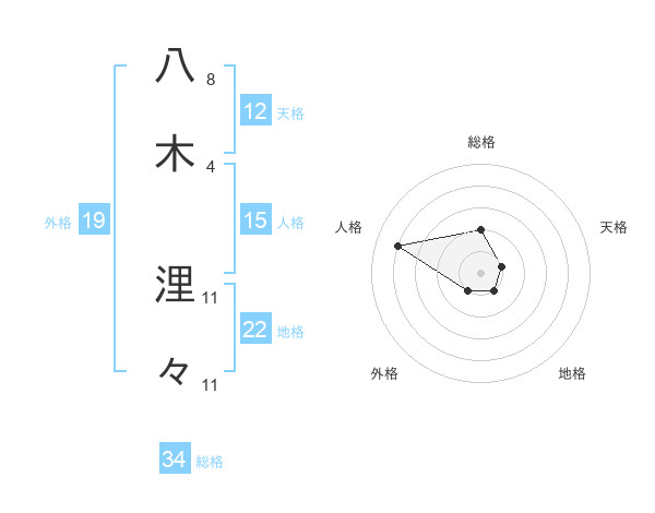 八木 浬々さんの地格は22画の1点!