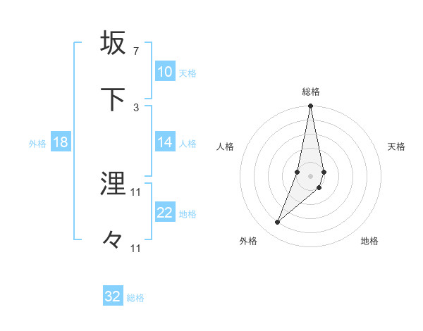 坂下 浬々さんの総格は32画の5点!