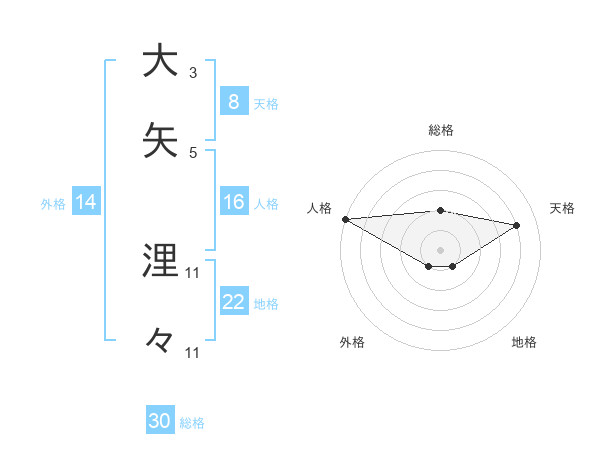 大矢 浬々さんを姓名の画数から五運を鑑定
