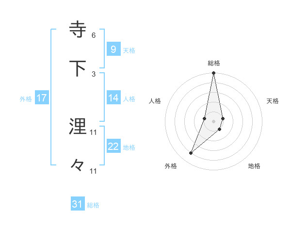 寺下 浬々さんを姓名の画数から五運を鑑定