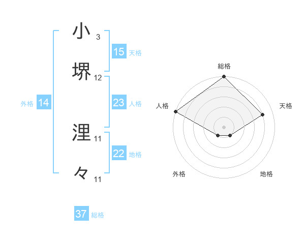 小堺 浬々さんの総格は37画の5点!