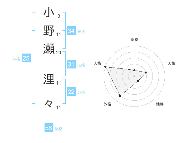 小野瀬 浬々さんを姓名の画数から五運を鑑定