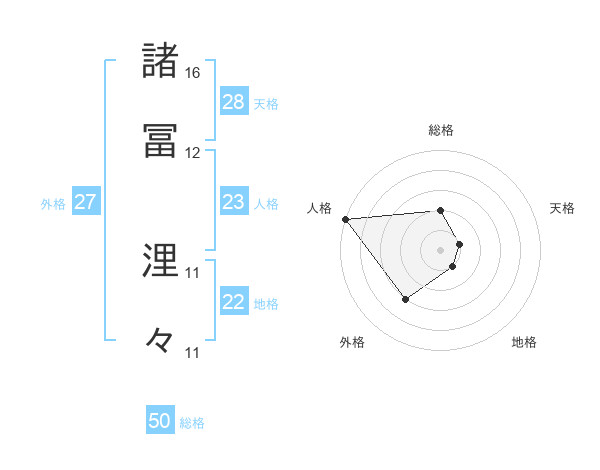 諸冨 浬々さんの総格は50画の2点!