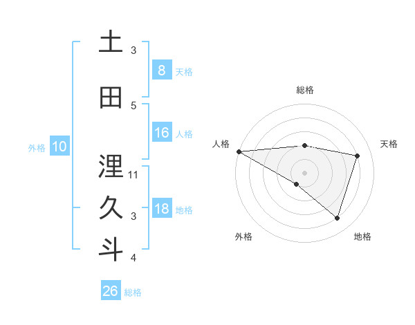 土田 浬久斗さんを姓名の画数から五運を鑑定