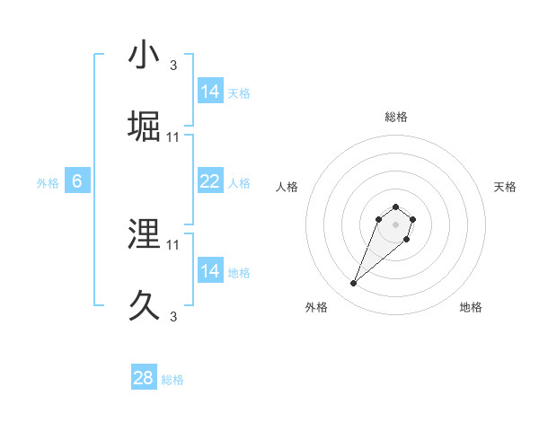 小堀 浬久さんを姓名の画数から五運を鑑定