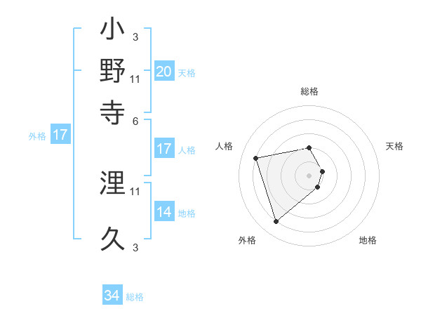 小野寺 浬久さんの総格は34画の2点!