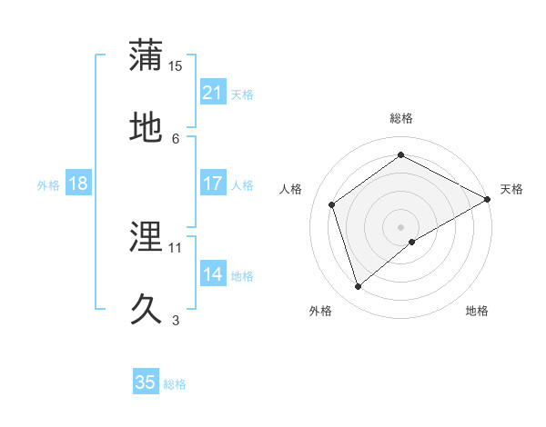 蒲地 浬久さんの天格は21画の5点!