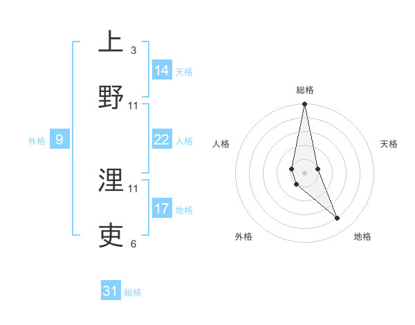 上野 浬吏さんの総格は31画の5点!