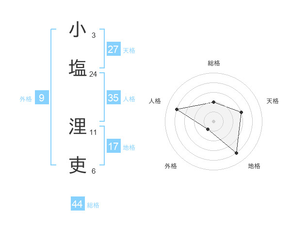 小塩 浬吏さんを姓名の画数から五運を鑑定