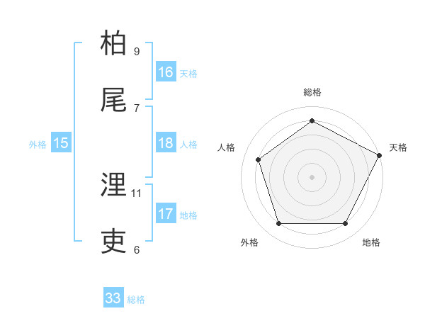 柏尾 浬吏さんの天格は16画の5点!