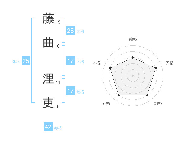 藤曲 浬吏さんの地格は17画の4点!