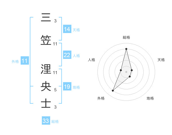 三笠 浬央士さんの総格は33画の4点!