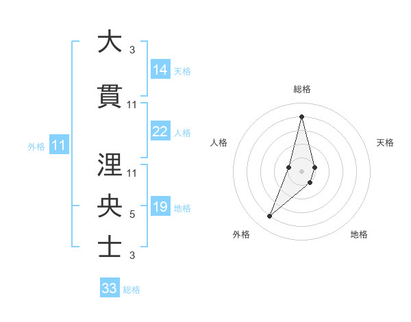 大貫 浬央士さんの総格は33画の4点!
