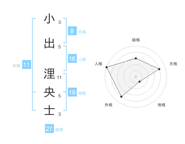小出 浬央士さんを姓名の画数から五運を鑑定