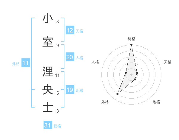 小室 浬央士さんの総格は31画の5点!