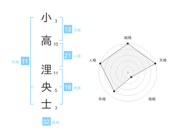 小高 浬央士さんの総格は32画の5点!