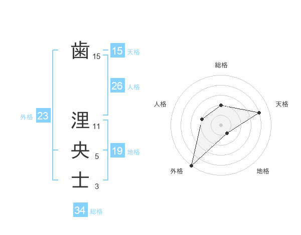 歯 浬央士さんを姓名の画数から五運を鑑定