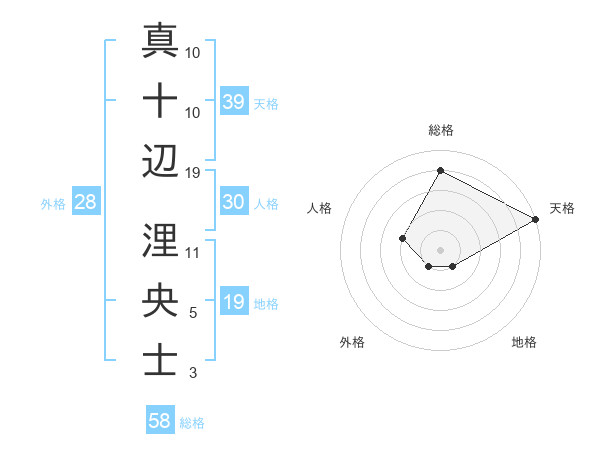 真十辺 浬央士さんを姓名の画数から五運を鑑定