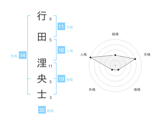 行田 浬央士さんを姓名の画数から五運を鑑定