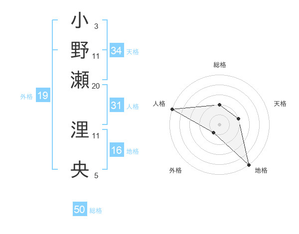 小野瀬 浬央さんを姓名の画数から五運を鑑定
