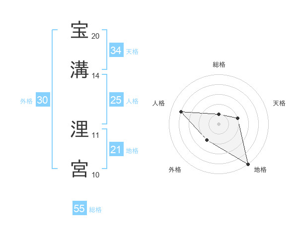 宝溝 浬宮さんを姓名の画数から五運を鑑定