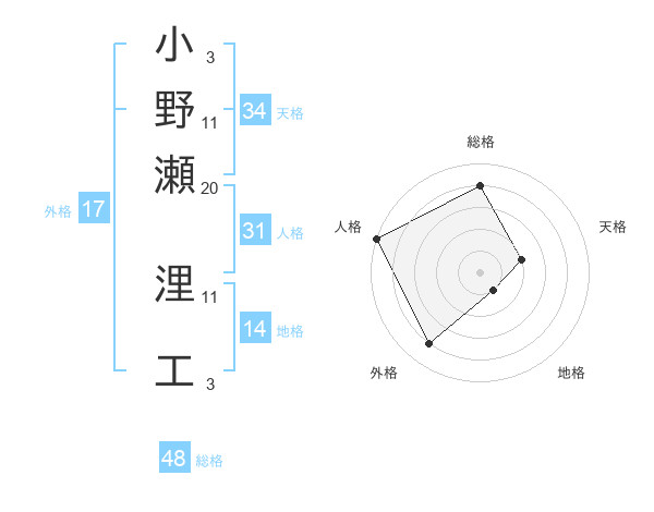 小野瀬 浬工さんを姓名の画数から五運を鑑定