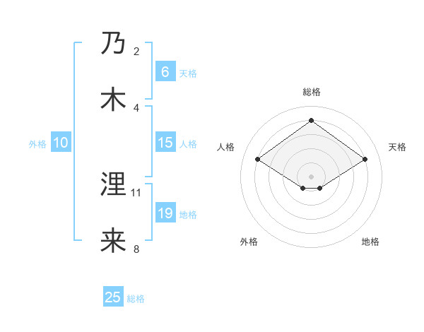 乃木 浬来さんの総格は25画の4点!