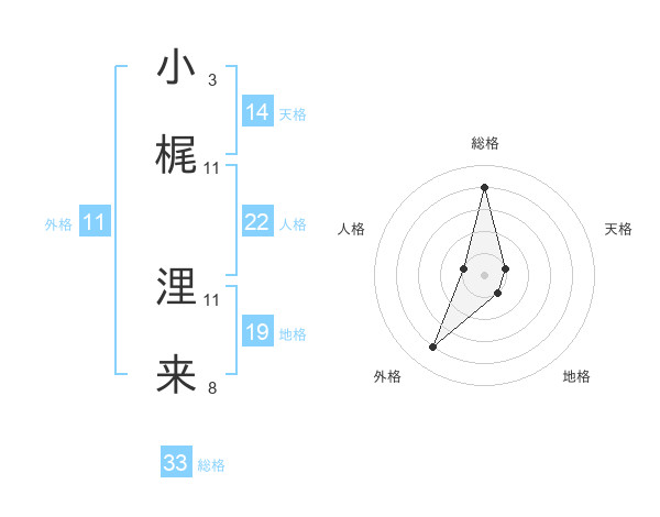 小梶 浬来さんを姓名の画数から五運を鑑定