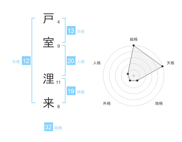 戸室 浬来さんを姓名の画数から五運を鑑定
