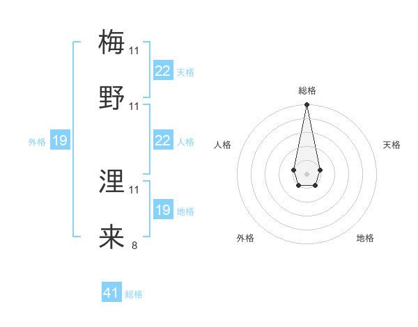 梅野 浬来さんの総格は41画の5点!