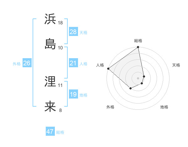 浜島 浬来さんを姓名の画数から五運を鑑定