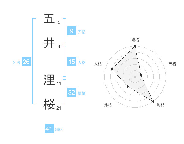 五井 浬桜さんを姓名の画数から五運を鑑定