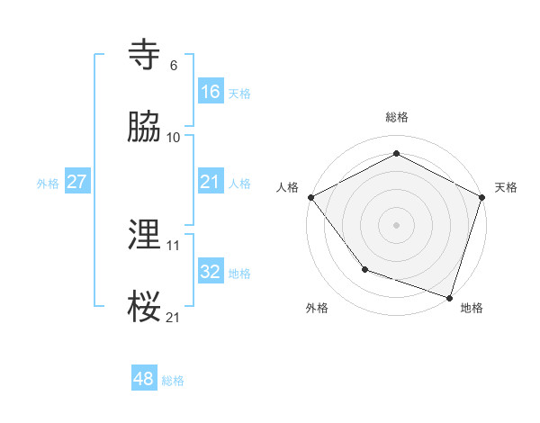 寺脇 浬桜さんの天格は16画の5点!