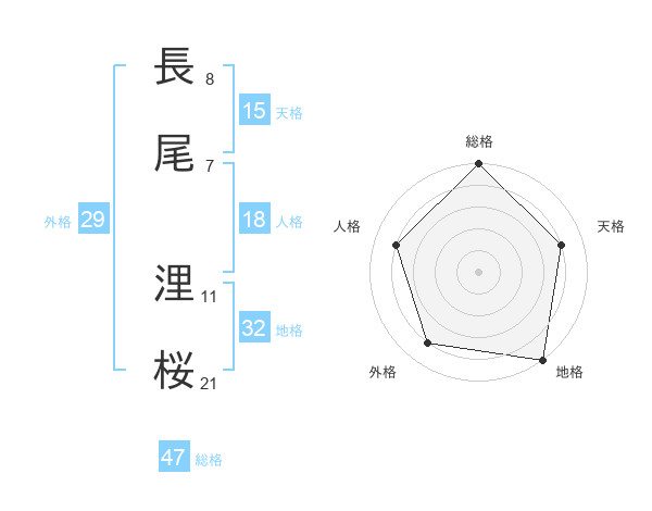 長尾 浬桜さんを姓名の画数から五運を鑑定