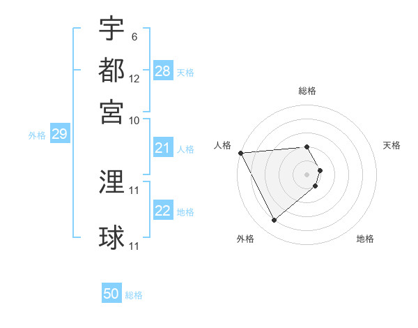 宇都宮 浬球さんの総格は50画の2点!