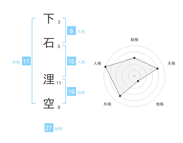 下石 浬空さんを姓名の画数から五運を鑑定