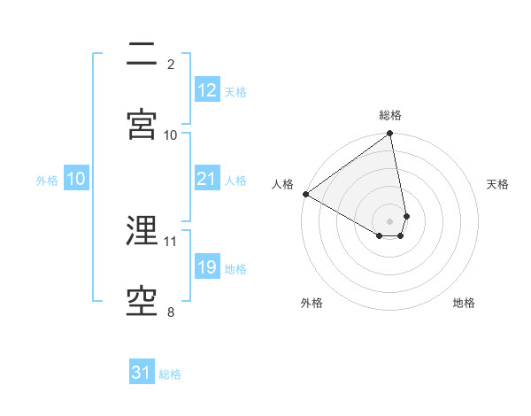 二宮 浬空さんの総格は31画の5点!