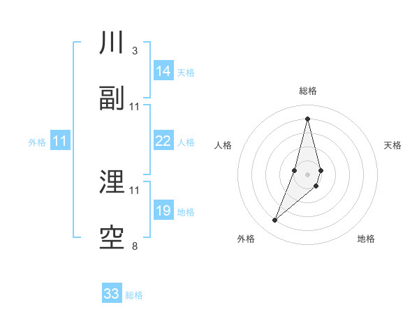 川副 浬空さんの総格は33画の4点!