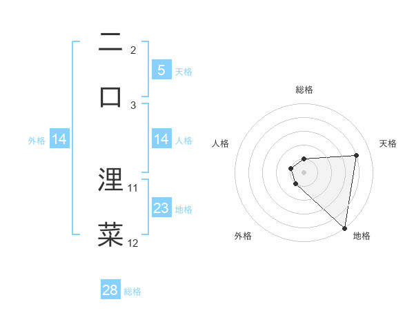 二口 浬菜さんの総格は28画の1点!