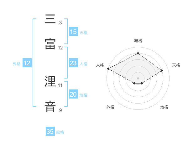 三富 浬音さんを姓名の画数から五運を鑑定
