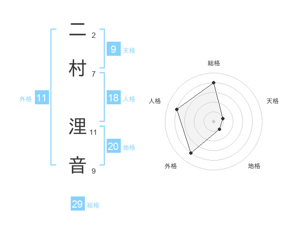 二村 浬音さんの総格は29画の4点!