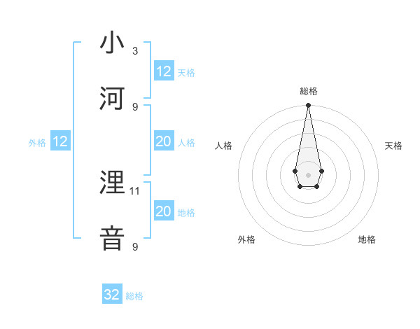 小河 浬音さんの総格は32画の5点!