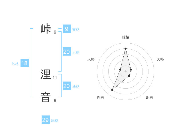 峠 浬音さんの総格は29画の4点!