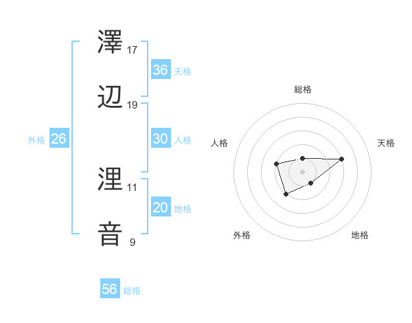 澤辺 浬音さんの総格は56画の1点!