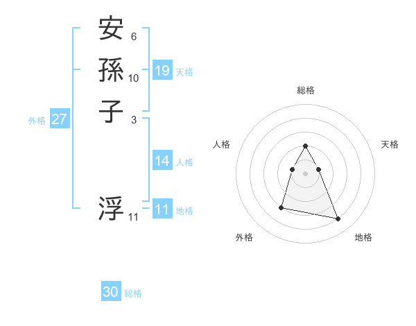 安孫子 浮さんの総格は30画の2点!