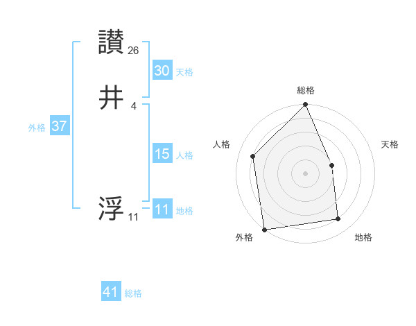 讃井 浮さんを姓名の画数から五運を鑑定