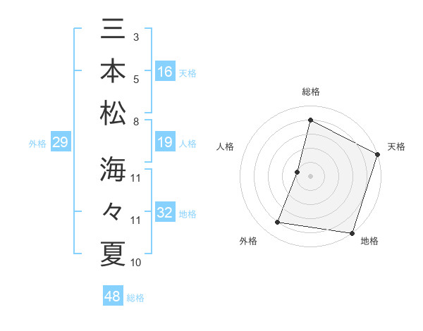 三本松 海々夏さんの外格は29画の4点!