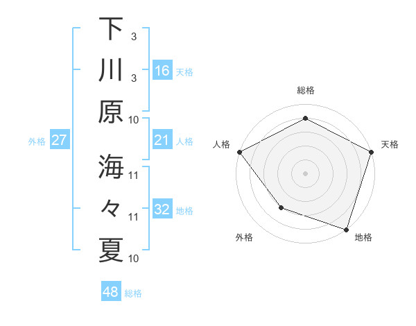下川原 海々夏さんを姓名の画数から五運を鑑定