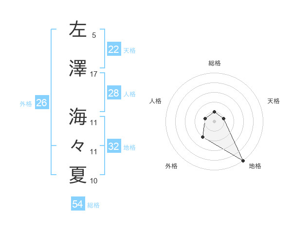 左澤 海々夏さんを姓名の画数から五運を鑑定